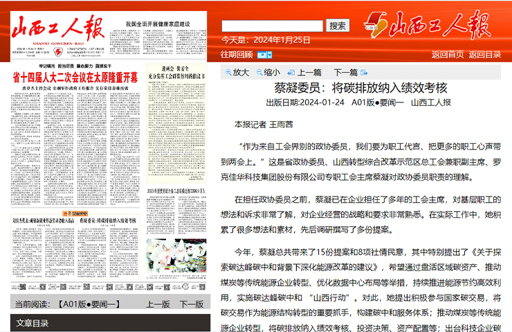 蔡凝委員:將碳排放納入績(jī)效考核 “作為來(lái)自工會(huì)界別的政協(xié)委員,我們要為職工代言、把更多的職工心聲帶到兩會(huì)上。”這是省政協(xié)委員、山西轉(zhuǎn)型綜合改革示范區(qū)總工會(huì)兼職副主席、羅克佳華科技集團(tuán)股份有限公司專職工會(huì)主席蔡凝對(duì)政協(xié)委員職責(zé)的理解。 了解更多
