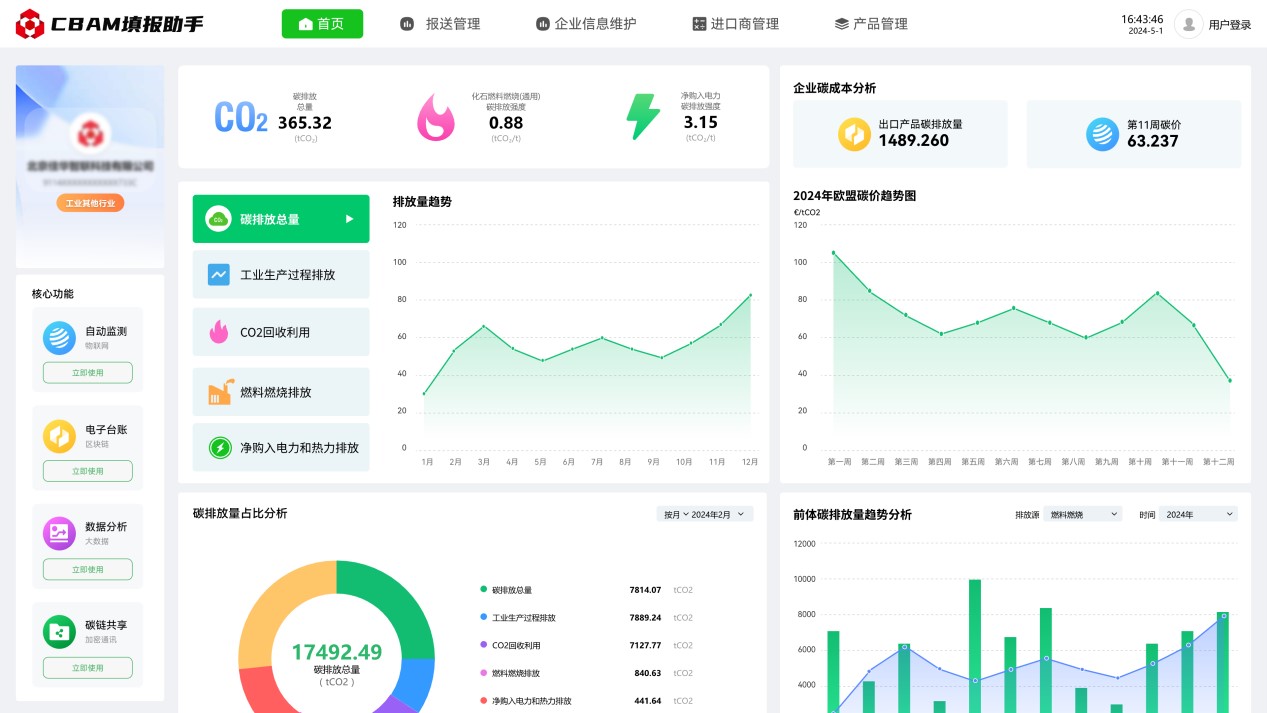2023年10月1日起,歐盟碳邊境調(diào)整機(jī)制(CBAM)已進(jìn)入過(guò)渡期,CBAM涵蓋范圍的出口產(chǎn)品需按時(shí)提交產(chǎn)品碳排放報(bào)告,未提交報(bào)告的企業(yè)將面臨高額處罰。為解決企業(yè)由于官方政策文件理解難度大,專業(yè)門檻高,數(shù)據(jù)搜集難度大,部分?jǐn)?shù)據(jù)缺失無(wú)法填等困擾,推出碳關(guān)稅管理平臺(tái)(CBAM填報(bào)助手),通過(guò)數(shù)字化方式,為企業(yè)提供碳數(shù)據(jù)填報(bào)、碳數(shù)據(jù)核算、碳數(shù)據(jù)報(bào)送、碳數(shù)據(jù)認(rèn)證、咨詢培訓(xùn)等全流程服務(wù)。可極大減少企業(yè)碳排放報(bào)送門檻,助力企業(yè)低成本合規(guī)報(bào)送碳排放數(shù)據(jù)。
